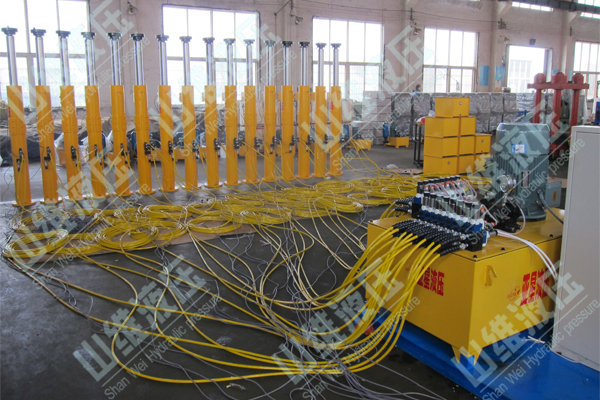2. 安裝液壓軟管,根據千斤頂的分布,分別將各個千斤頂串聯一起再和液壓頂升泵站的油路出口用液壓軟管連接上。