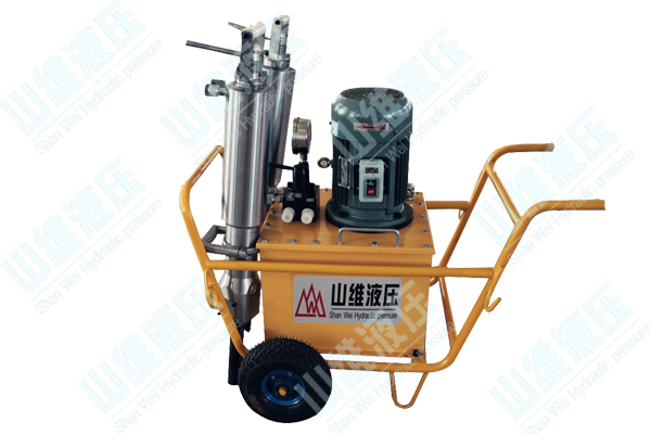 山維巖石分裂機由液壓動力站和分裂槍兩大部分組成,分裂機由泵站輸出的超高壓油驅(qū)動油缸產(chǎn)生巨大推動力,并經(jīng)機械放大后即可使被分裂物體按預定方向裂開。液壓站供給60Mpa的液壓油到分裂槍上,分裂槍可產(chǎn)生幾十噸的推力,分裂機推動契片向兩邊擴張,擴張力可達幾百噸,從而使物體從內(nèi)部分裂而分離開。分裂機的結(jié)構(gòu)主要是由液壓站、輸油管、劈裂槍、契片等組成。